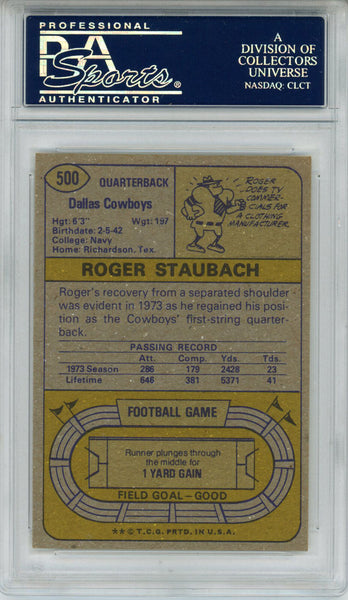 Roger Staubach Autographed 1974 Topps #500 Trading Card PSA Slab 43557
