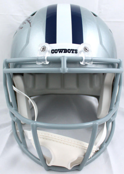 Roger Staubach Autographed Dallas Cowboys F/S Speed Helmet w/SB MVP,HOF- Beckett W Hologram *Black This is a hand autographed Helmet of Roger Staubach of the Dallas Cowboys. This is a Riddell Football Full Size Speed Replica Helmet. Inscribed SB MVP, HOF. This item has a Beckett Witness Authentication, which comes with a Beckett numbered hologram and a QR code for verification. You can view this item on the Beckett Authentication website and it shows when and where the item was signed. It was signed either at a public autograph appearance or a Private Signing. This is a stock photo of the item. Although you may not receive this exact item, the item you receive is virtually identical and brand new in great shape.