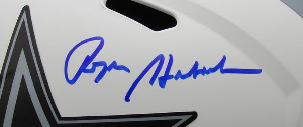Roger Staubach HOF Autographed White Full Size Lunar Eclipse Replica Football Helmet Dallas Cowboys. This helmet is authenticated by BAS/Beckett and includes their Tamper-proof Sticker and Certificate of Authenticity.