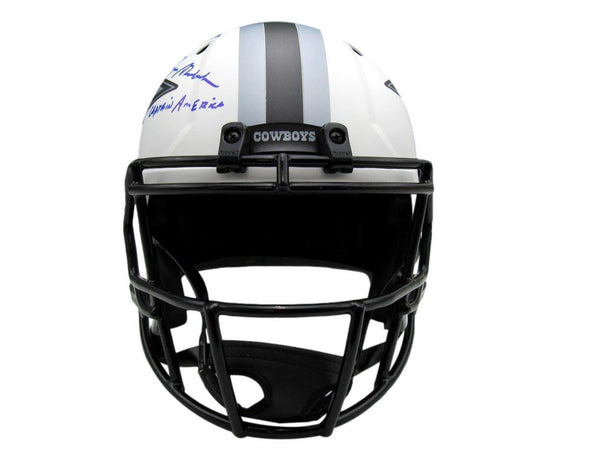 Roger Staubach HOF Autographed/Inscribed "Captain America" White Full Size Lunar Eclipse Replica Football Helmet Dallas Cowboys. This helmet is authenticated by BAS/Beckett and includes their Tamper-proof Sticker and Certificate of Authenticity.