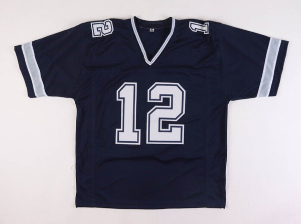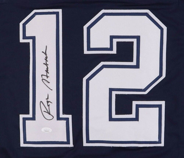 Custom on-field style jersey. Everything sewn on, size XL. Hand-signed by Roger Staubach (HOF).The autograph(s) includes an official James Spence Authentication (JSA) hologram and QR Code Card for authenticity purposes. The signing of this item was witnessed by JSA.Authentication: JSA Hologram with QR Code Card