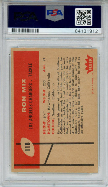 Ron Mix Autographed 1960 Fleer #118 Rookie Card HOF PSA Slab 43601