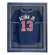 Featured is a Ronald Acuna Jr signed custom baseball jersey. This jersey has been hand signed by Acuna and comes with the Beckett witnessed hologram and certificate of authenticity. This jersey features professionally sewn letters and numbers and is size XL. This jersey has no team tags or emblems and is intended as a sports collectible. This jersey has been professionally framed and matted and is approximately 32x42. This jersey would make a great addition to any sports memorabilia collection!. SPECIFICATIONS Autographed By: Ronald Acuna Jr Team: Atlanta Braves Sport: Baseball Authentication: Beckett Grading Services