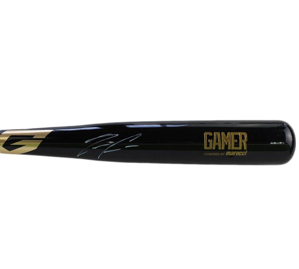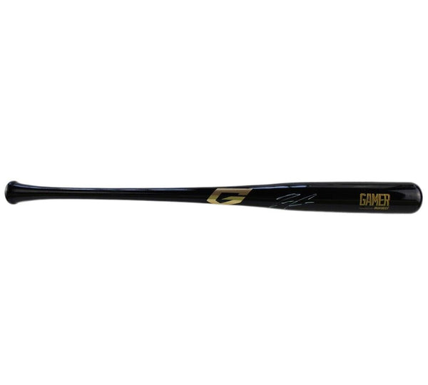 An Atlanta Braves Marucci Gamer Black MLB Bat hand signed by Ronald Acuna Jr. The item and signature are in excellent condition. Ronald is a professional baseball player who plays outfield. He won the National League Rookie of the Year award and the Silver Slugger award in 2018. AUTHENTICATION: The item is accompanied by a Beckett Certificate of Authenticity - Beckett Serial Numbered & Databased Holograms