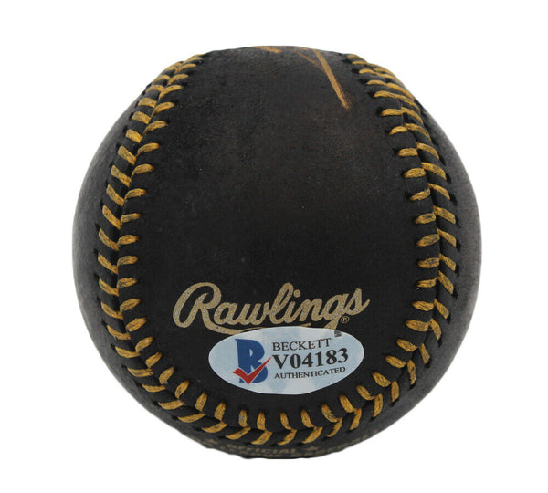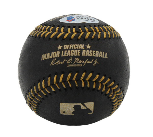 An Atlanta Braves Rawlings Official Major League Black MLB Baseball hand signed by Ronald Acuna Jr. The item and signature are in excellent condition. Ronald is a professional baseball player who plays outfield. He won the National League Rookie of the Year award and the Silver Slugger award in 2018. AUTHENTICATION: The item is accompanied by a Beckett Certificate of Authenticity - Beckett Serial Numbered & Databased Holograms