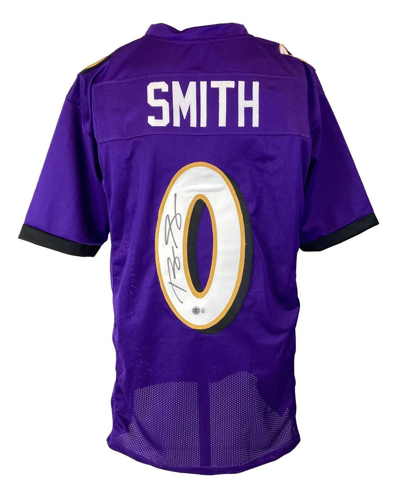 Featured is a Roquan Smith signed custom football jersey. This jersey has been hand signed by Smith and comes with the Beckett hologram and certificate of authenticity. This jersey features professionally sewn letters and numbers and is size XL. This jersey has no team tags or emblems and is intended as a sports collectible. This jersey would make a great addition to any sports memorabilia collection!. SPECIFICATIONS Autographed By: Roquan Smith Team: Baltimore Ravens Sport: Football Authentication: Beckett Grading Services