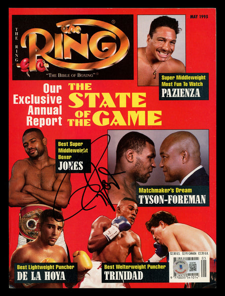 This is a Ring Magazine that has been hand signed by Roy Jones Jr. There are creases in the item as shown. This item has been certified authentic by Beckett Authentication (BAS) and comes with their tamper-proof QR Code hologram that can be verified on the Beckett-authentication.com.