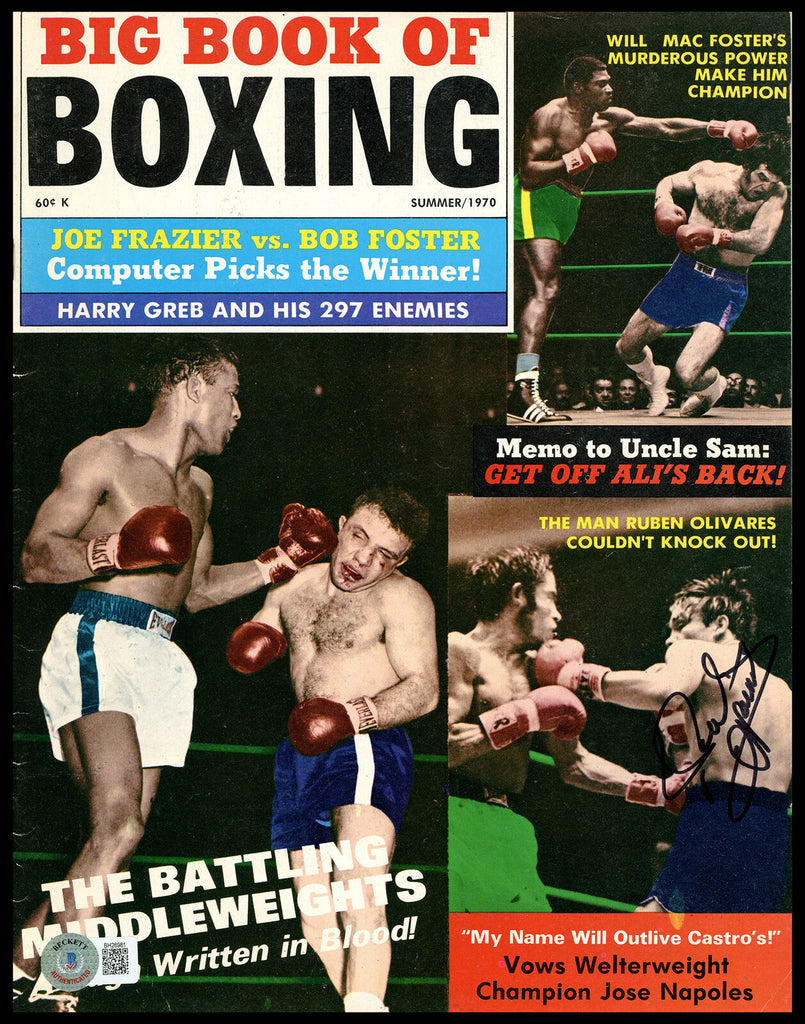 This is a Big Book of Boxing magazine that has been hand signed by Ruben Olivares. This item has been certified authentic by Beckett Authentication (BAS) and comes with their Tamper-proof QR Code Hologram that can be verified on the Beckett-authentication.com.