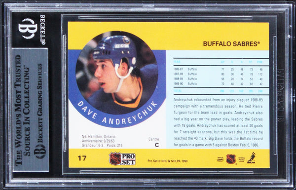 This Autographed 1990 Pro Set #17B Card has been Personally Signed by Dave Andreychuk of the Buffalo Sabres. This item is 100% Authentic, it comes slabbed and authenticated by Beckett Authentication Services. The authenticity can be verified on Beckett Authentication Services website.
