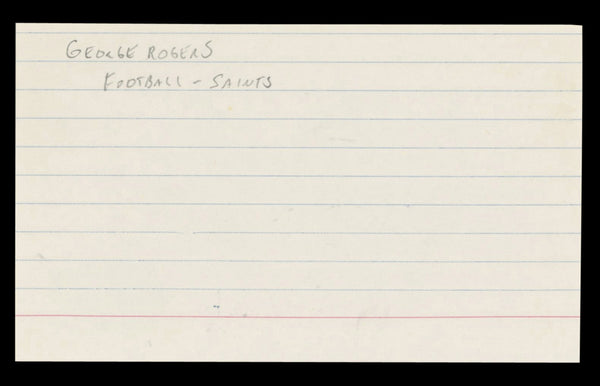 This Autographed 3x5 Index Card has been Personally Signed by George Rogers of the New Orleans Saints. This item is 100% Authentic to include a hologram by Beckett Authentication Services. This item will come with an affixed Beckett Authentication Services (BAS) authentication sticker, which includes a scannable QR code to verify authenticity. Please note that Beckett no longer provides serial-numbered COA cards, and the attached BAS sticker will serve as the complete authentication for this item. The authenticity can be verified on Beckett Authentication Services website.