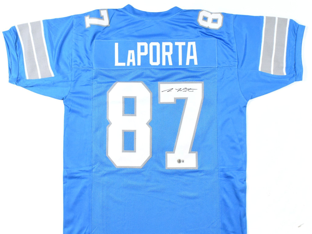 THIS IS NOT AN NFL JERSEY. THIS HAS NO TAGS, NO LOGOS, NO EMBLEMS. This is a hand autograph of Sam LaPorta of the Detroit Lions on a Custom Made (non-name brand) Authentic Style Jersey with stitched letters and numbers. This item has a Beckett Witnessed Authentication, which comes with a Beckett numbered sticker hologram and a QR Code for verification. You can view this item on the Beckett Authentication website. It was signed either at a public autograph appearance or a private signing. This is a stock photo of the item. Although you may not receive this exact item, the item you receive is virtually identical and brand new in great shape. Jersey size is XL. THIS IS NOT AN NFL JERSEY. THIS HAS NO TAGS, NO LOGOS, NO EMBLEMS. This is a hand autograph of Sam LaPorta of the Detroit Lions on a Custom Made (non-name brand) Authentic Style Jersey with stitched letters and numbers. This item has a Beckett Witnessed Authentication, which comes with a Beckett numbered sticker hologram and a QR Code for verification. You can view this item on the Beckett Authentication website. It was signed either at a public autograph appearance or a private signing. This is a stock photo of the item. Although you may not receive this exact item, the item you receive is virtually identical and brand new in great shape. Jersey size is XL.