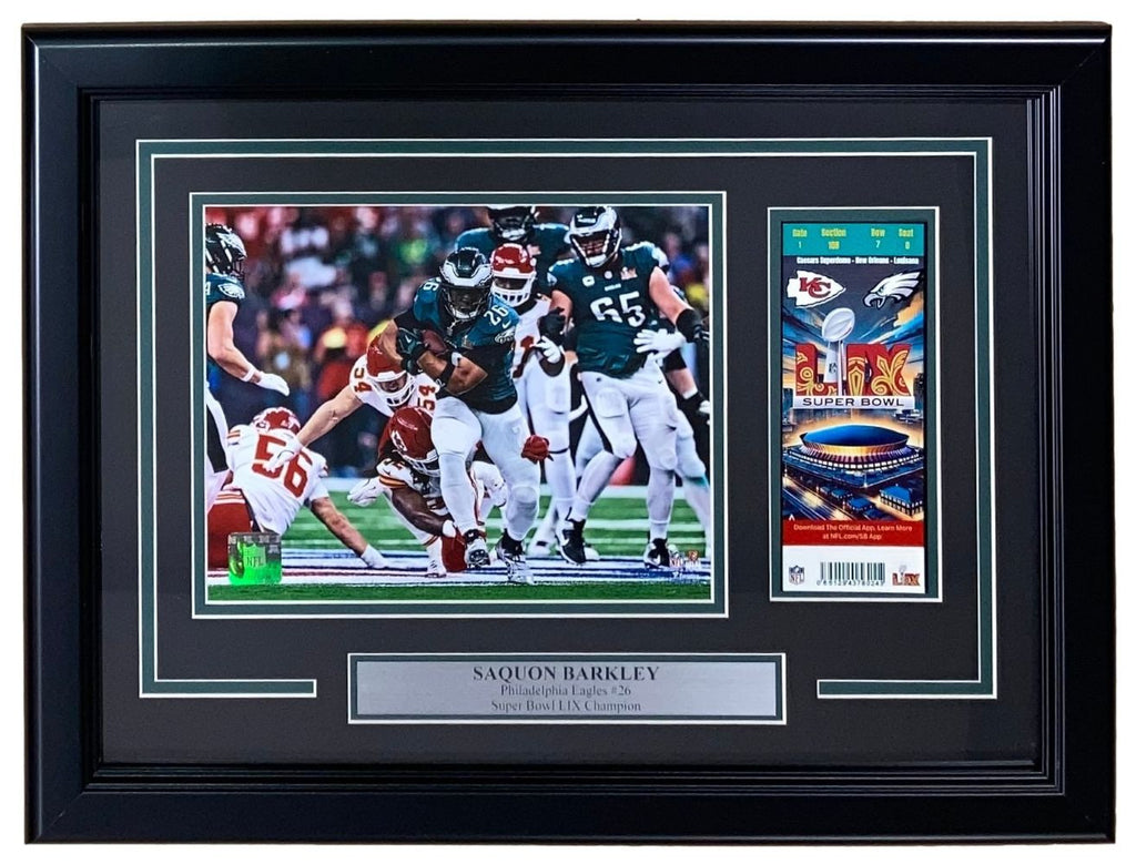 Saquon Barkley Framed 8x10 Eagles Super Bowl 59 Photo w/ Replica Ticket