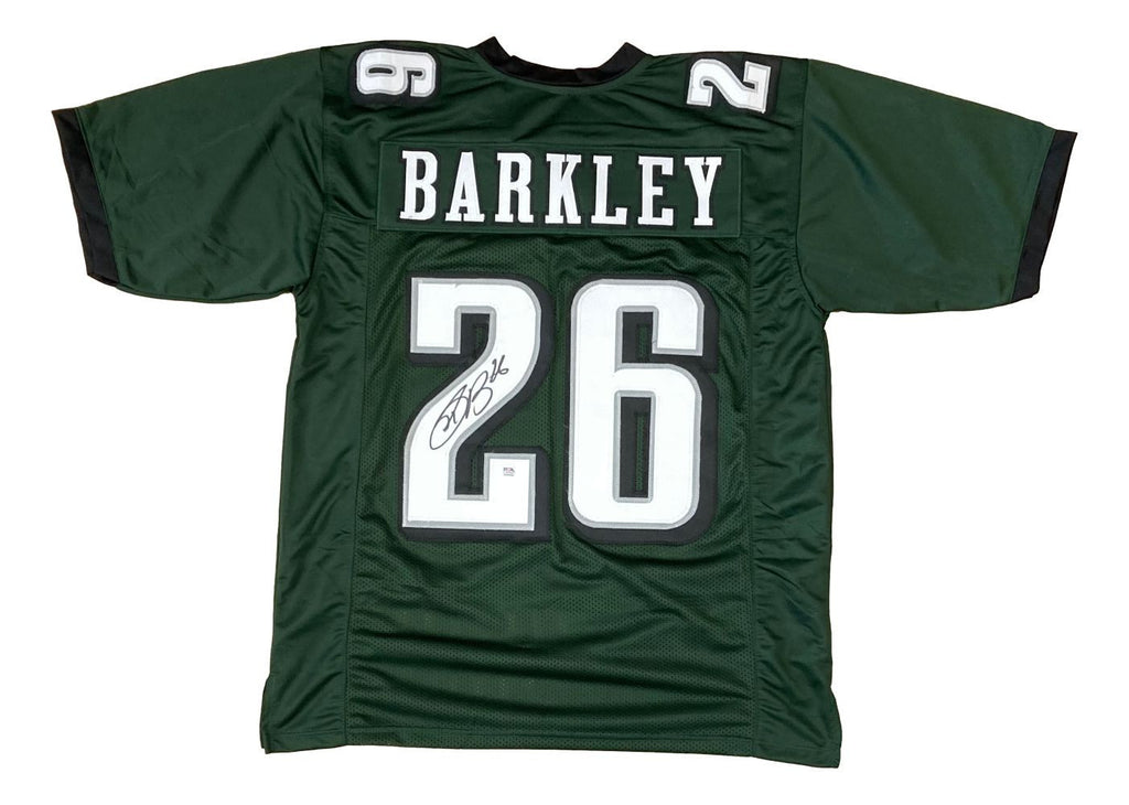 Featured is a Saquon Barkley signed custom football jersey. This jersey has been hand signed by Barkley and comes with the PSA/DNA witnessed hologram. This jersey features professionally sewn letters and numbers and is size XL. This jersey has no team tags or emblems and is intended as a sports collectible. This jersey would make a great addition to any sports memorabilia collection! SPECIFICATIONS Autographed By: Saquon Barkley Team: Philadelphia Eagles Sport: Football Authentication: PSA/DNA Authentication Services