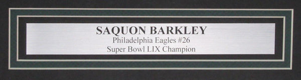Saquon Barkley Signed/Autographed 16x20 Photo Super Bowl LIX Philadelphia Eagles Framed. The outer frame size is 22 inches x 29 inches. This photo is authenticated by PSA/DNA and includes their tamper-proof hologram sticker.