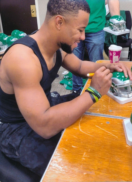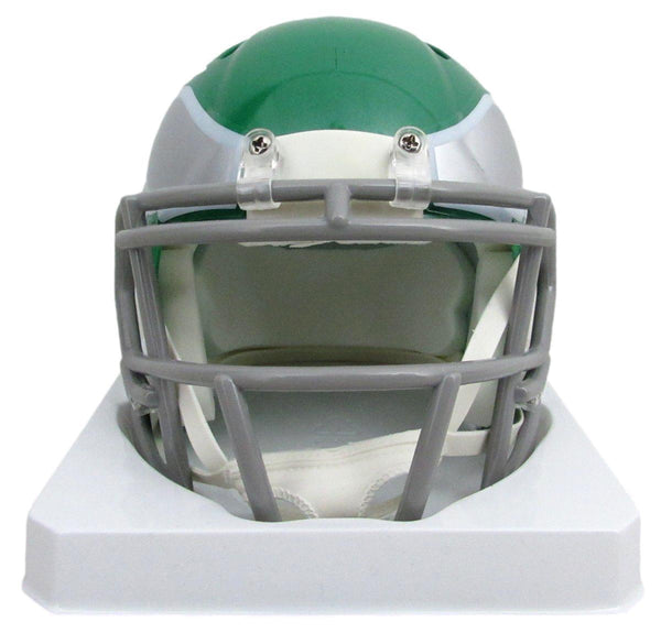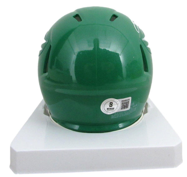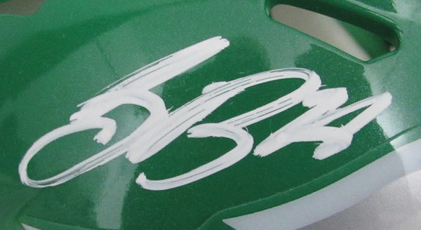 Saquon Barkley Signed/Auto Kelly Mini Helmet with white letters Philadelphia Eagles. This helmet is authenticated by BAS/Beckett Witness and includes their Tamper-proof Hologram Sticker.