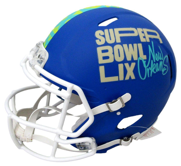 Saquon Barkley Signed/Autographed Blue Super Bowl LIX Full Size Authentic Football Helmet Philadelphia Eagles. This helmet is authenticated by PSA/DNA In-The-Presence and includes their tamper-proof hologram sticker.