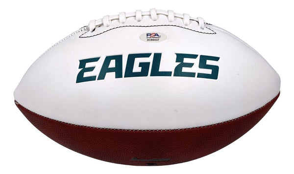 Featured is a Saquon Barkley signed Philadelphia Eagles logo football. This ball has been hand signed by Barkley and comes with the PSA/DNA witnessed hologram. Included with this ball is a Super Bowl LIX deluxe acrylic display case. This ball would make a great addition to any sports memorabilia collection! SPECIFICATIONS Autographed By: Saquon Barkley Team: Philadelphia Eagles Sport: Football Authentication: PSA/DNA Authentication Services