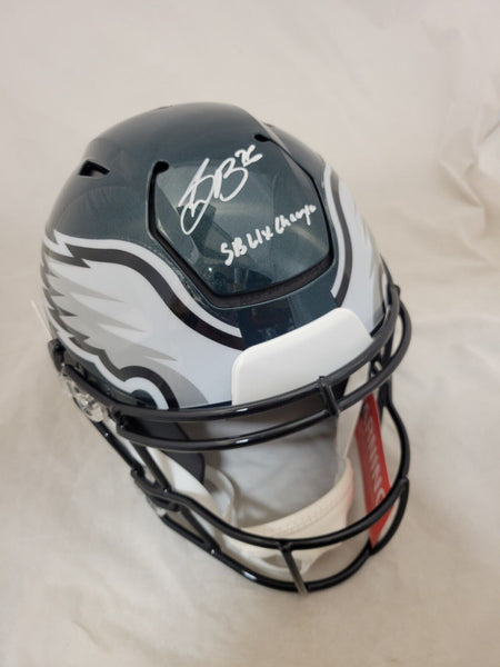 SAQUON BARKLEY AUTOGRAPHED PHILADELPHIA EAGLES FULL SIZE KELLY GREEN ALTERNATE SPEEDFLEX AUTHENTIC HELMET"SB LIX CHAMPS" INSCRIPTIONBECKETT WITNESSED COATHIS MEANS THE HELMET WAS SIGNED WITH A BECKETT REPRESENTATIVE PRESENT SO YOU CAN BE 100% CERTAIN ITS THE REAL THING.