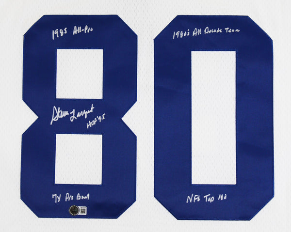 Seahawks Steve Largent "Career Stat" Signed White M&N TB Jersey BAS Witnessed