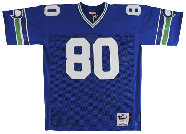 This Autographed Blue Mitchell & Ness Jersey with the inscription of "HOF 95" has been Personally Signed by Steve Largent of the Seattle Seahawks. This item is 100% Authentic to include a hologram by Beckett Authentication Services. This item may come with the new Beckett Authentication hologram that has a scannable QR code rather than the traditional COA. If you would like to have a COA, you are welcome to reach out to Beckett for a printed certification once you receive your item. This is a BAS Witnessed Protection Program item which means a Beckett Authentication Service representative was present when this item was being signed. We conducted an autograph signing with Steve Largent where multiples of the same item were signed. While the photographs are representative of this item, the size, placement and strength of the signature may vary. Each item is hand signed, therefore, each autograph is unique. This item can be verified through BAS Witnessed. This is a X-Large sized Jersey.