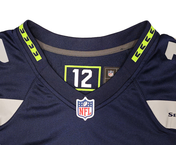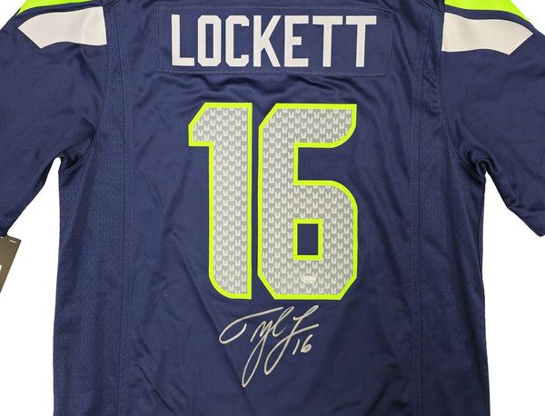 This is a Blue Nike Seattle Seahawks On Field Jersey that has been hand signed by Tyler Lockett. This jersey is Size L Large. This item was signed in the presence of a Mill Creek Sports representative and comes with their serial numbered hologram and matching certificate of authenticity.