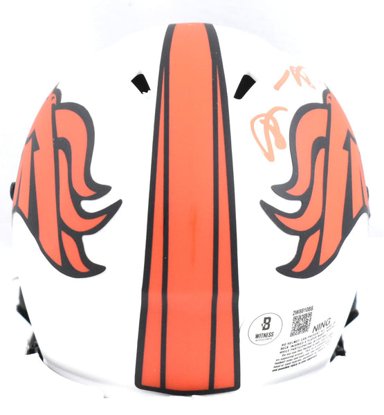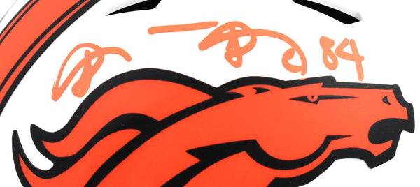 This is a hand autograph of Shannon Sharpe of the Denver Broncos on a Riddell Football Lunar Speed Mini Helmet. This item has a Beckett Witnessed Authentication, which comes with a numbered hologram and a QR code for verification. You can view this item on the Beckett Authentication website and it shows when and where the item was signed. It was signed either at a public autograph appearance or a private signing. This is a stock photo of the item. Although you may not receive this exact item, the item you receive is virtually identical and brand new in great shape. This is a hand autograph of Shannon Sharpe of the Denver Broncos on a Riddell Football Lunar Speed Mini Helmet. This item has a Beckett Witnessed Authentication, which comes with a numbered hologram and a QR code for verification. You can view this item on the Beckett Authentication website and it shows when and where the item was signed. It was signed either at a public autograph appearance or a private signing. This is a stock photo of the item. Although you may not receive this exact item, the item you receive is virtually identical and brand new in great shape.