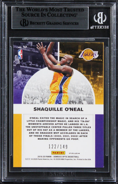 This Autographed 2018 Donruss Optic Winner Stays Lime Green #17 Card has been Personally Signed by Shaquille O'Neal of the Los Angeles Lakers. This item is 100% Authentic, it comes slabbed and authenticated by Beckett Authentication Services. The authenticity can be verified on Beckett Authentication Services website.