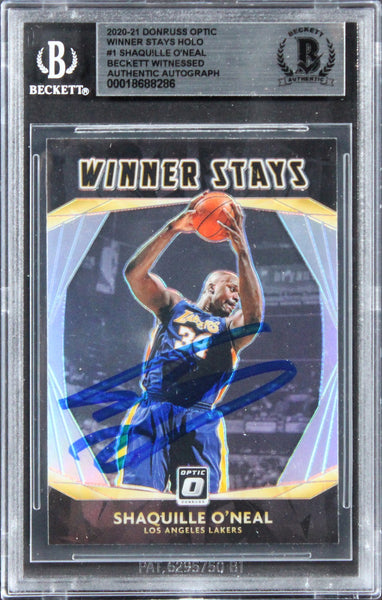Shaquille O'Neal Signed 2020 Donruss Optic Winner Stays Holo #1 Card BAS Slabbed