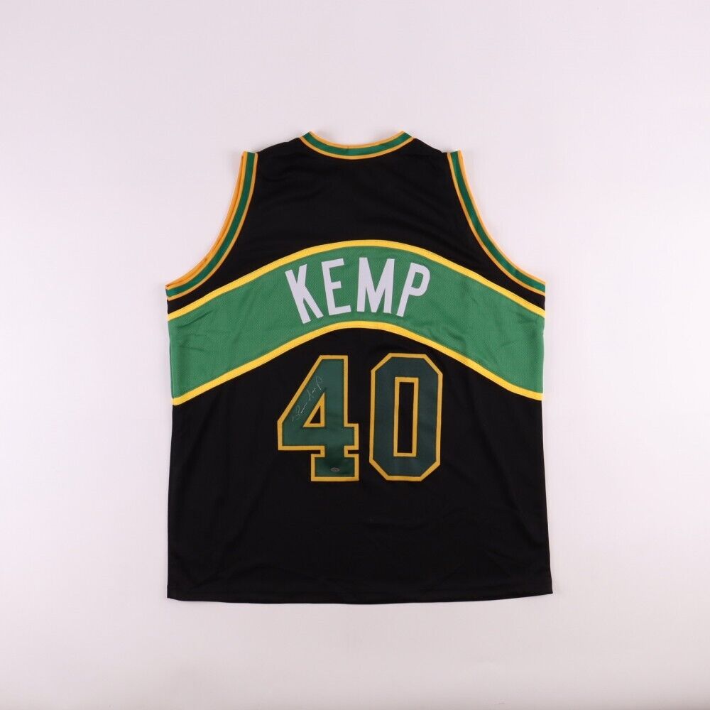 Custom on-court style jersey. Everything is sewn on, size XL. Hand-signed by Shawn Kemp.The lot / autograph(s) includes an official OkAuthentics hologram for authenticity purposes.Authentication: OkAuthentics Hologram