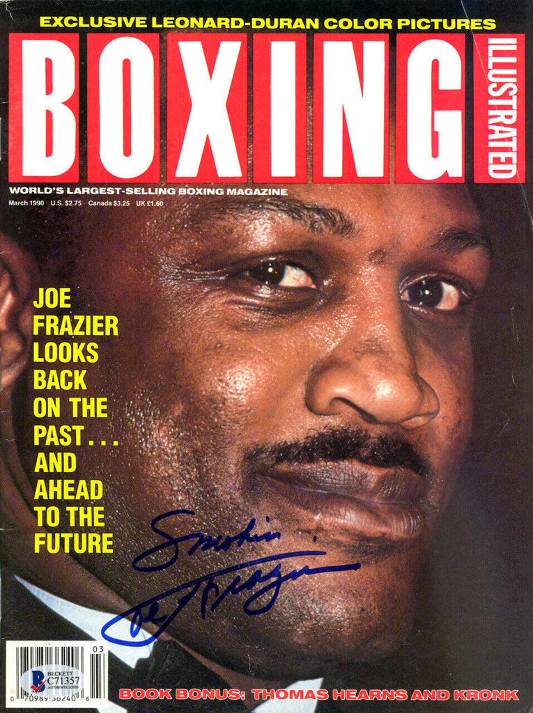 This is a Boxing Illustrated Magazine that has been hand signed by "Smokin" Joe Frazier. It has been certified authentic by Beckett Authentication (BAS) and comes with their sticker and matching certificate of authenticity.