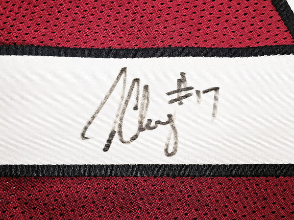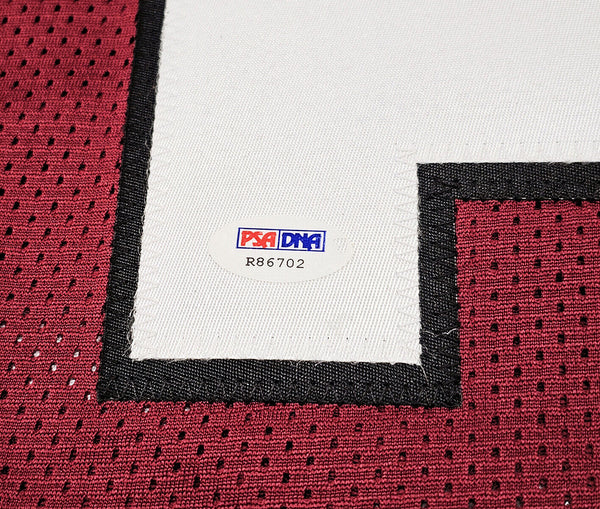 This is a Maroon Jersey that has been hand signed by Jadeveon Clowney. This is a custom jersey with no name brand. The approximate size is XL. It has nice sewn in name and numbers. This item has been certified authentic by PSA/DNA and comes with their tamper-proof sticker and matching certificate of authenticity.
