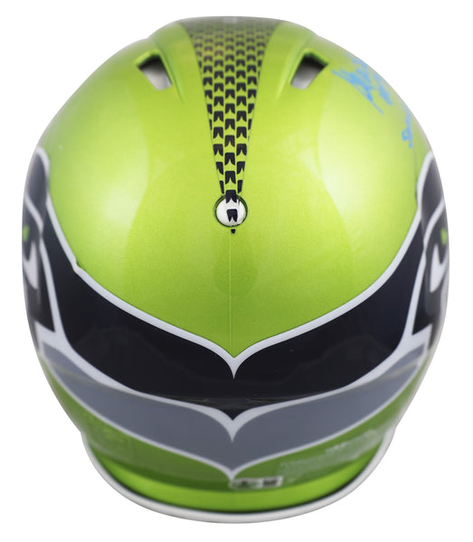 This Autographed Alternate Flash Riddell Full Size Speed Proline Helmet W/ Uv Mirrored Back Acrylic Display Case with the inscription of "HOF 1995, Seahawks Triple Crown, 819 Recs, 13,089 Yds, 100 TD's" has been Personally Signed by Steve Largent of the Seattle Seahawks. This item is 100% Authentic to include a hologram by Beckett Authentication Services. This item will come with an affixed Beckett Authentication Services (BAS) authentication sticker, which includes a scannable QR code to verify authenticity. Please note that Beckett no longer provides serial-numbered COA cards, and the attached BAS sticker will serve as the complete authentication for this item. This is a BAS Witnessed Protection Program item which means a Beckett Authentication Service representative was present when this item was being signed. We conducted an autograph signing with Steve Largent where multiples of the same item were signed. While the photographs are representative of this item, the size, placement and strength of the signature may vary. Each item is hand signed, therefore, each autograph is unique. This item can be verified through BAS Witnessed.