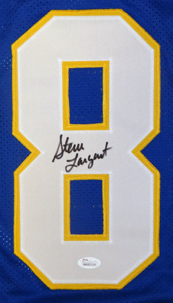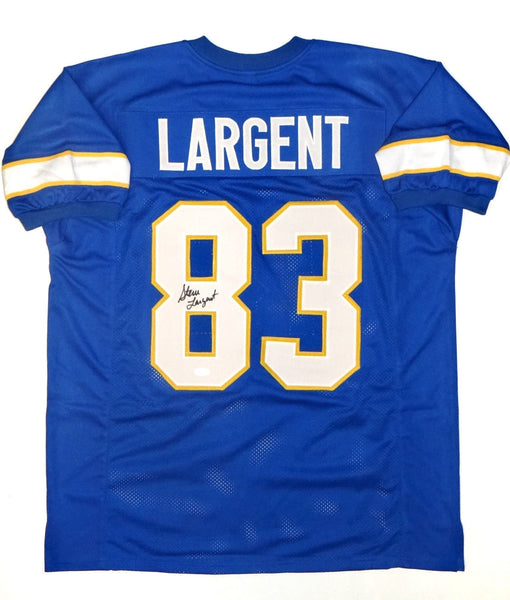 Steve Largent Signed / Autographed Blue W/ Yellow Jersey- JSA W Authenticated Steve Largent Signed / Autographed Blue W/ Yellow Jersey With James Spence Authentication THIS IS NOT AN NCAA JERSEY. THIS HAS NO TAGS, NO LOGOS, NO EMBLEMS. This is a Hand Autographed Jersey of Steve Largent. This is Custom Made (Non Name Brand) Authentic Style (Stitched Letters and Numbers). This item has a James Spence Authentication, which Comes with a JSA #'ed Sticker and a Matching JSA COA. You can view this item on the JSA website. It was signed either at a public autograph appearance or a Private Signing. This is a stock photo of the item. Although you may not receive this exact item, the item you receive is virtually identical and brand new in great shape. Jersey size is XL. .