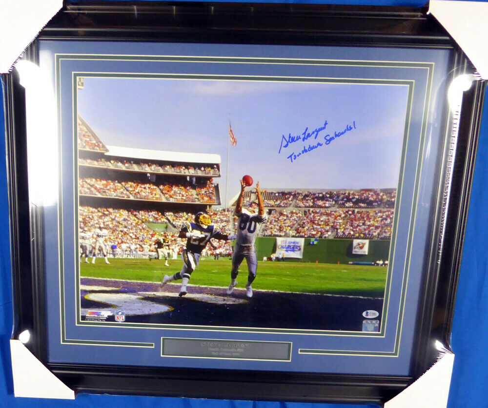 This is a framed 16x20 Photo, approximately 24x28 with the frame, that has been hand signed by Steve Largent. It has been certified authentic by Beckett Authentication (BAS) and comes with their sticker and matching certificate of authenticity.