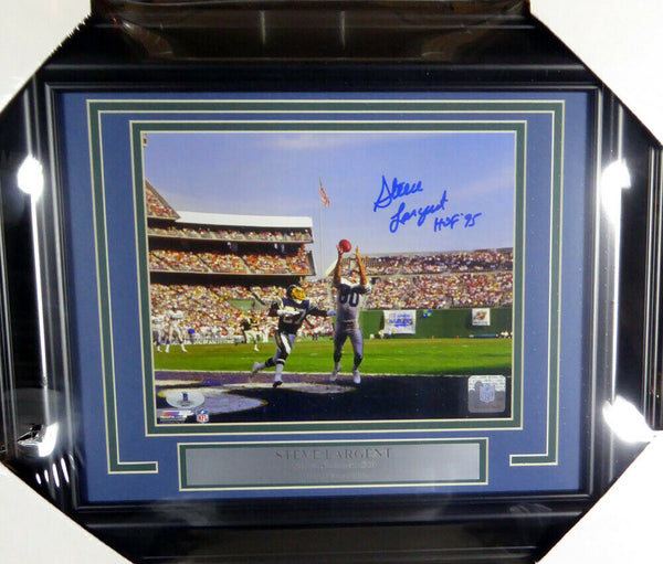 This is a framed 8x10 Photo, approximately 15x18 with the frame, that has been hand signed by Steve Largent. It has been certified authentic by Beckett Authentication Services (BAS) and comes with their sticker and matching certificate of authenticity.