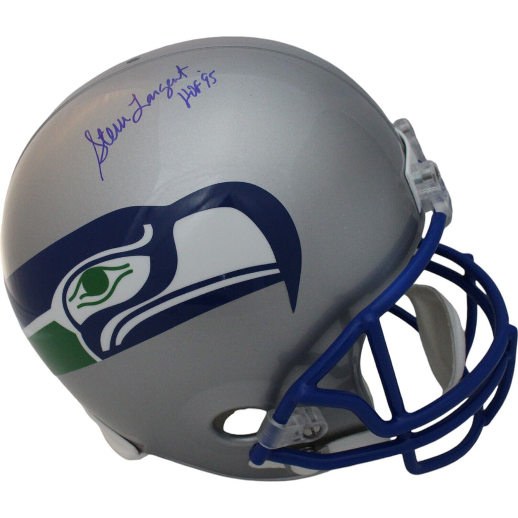 The number in the listing title is just an inventory sku for our records and is not the authentication number. The item pictured is a stock photo unless otherwise noted. This is a Seattle Seahawks Full Size VSR4 Throwback 1983-2001 Replica Helmet that was personally autographed by Steve Largent with "HOF" inscription. Includes a certificate of authenticity from Beckett Authentication Services (BAS) and Denver Autographs.