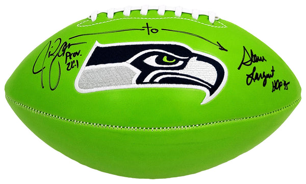 This is a Seattle Seahawks Green Logo Football that has been hand signed by Steve Largent & Jim Zorn. This item was signed in the presence of a Mill Creek Sports representative and comes with their serial numbered hologram and matching certificate of authenticity.