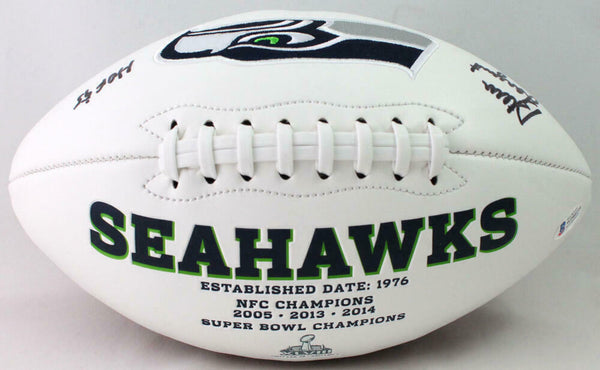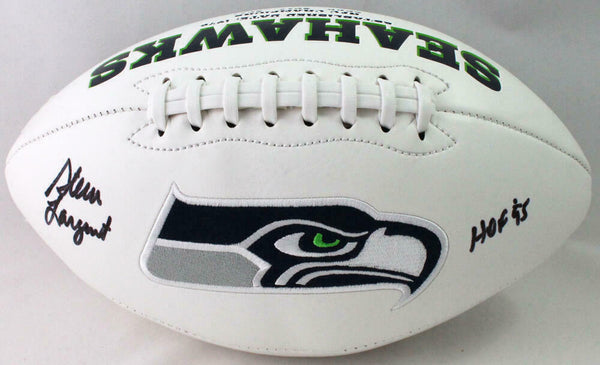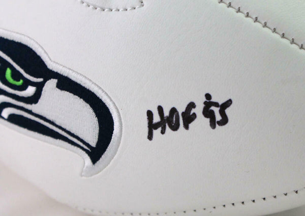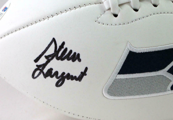 Steve Largent Autographed Seattle Seahawks Logo Football w/ HOF - Beckett W Auth *Split This is a hand autographed Football of Steve Largent of the Seattle Seahawks. This is a Seattle Seahawks Logo Football. This item is inscribed with HOF. This item has a Beckett Witnessed Authentication, which comes with a numbered and a matching Beckett Certificate of Authenticity. You can view this item on the Beckett Authentication website and it shows when and where the item was signed. It was signed either at a public autograph appearance or a private signing. This is a stock photo of the item. Although you may not receive this exact item, the item you receive is virtually identical and brand new in great shape.