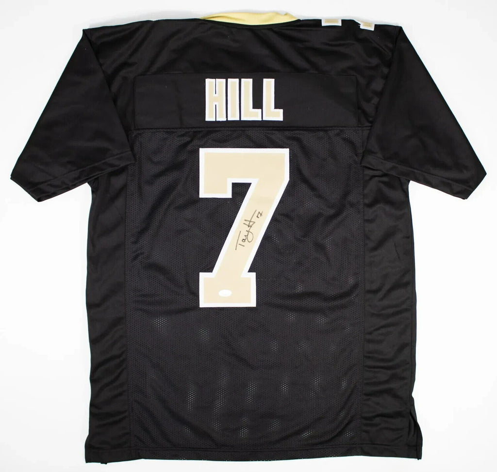 This autographed jersey has been personally hand-signed by Taysom Hill of the New Orleans Saints.This autograph is certified by James Spence Authentication (JSA). It comes with the numbered hologram and matching Certificate of Authenticity.Custom on-field style jerseys are a more affordable option for autograph seekers. These jerseys do not have any brand name or tags and are made in the Philippines. They feature stitched on names and numbers and are made to look very similar to the on-field jerseys that the players wear. These custom jerseys are very commonly used in the memorabilia industry.