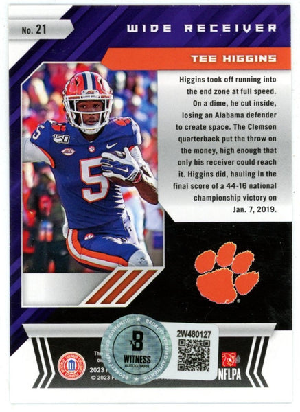 The number in the listing title is just an inventory sku for our records and is not the authentication number. The item pictured is the exact item you will see, please see photos for condition. This is a Clemson Tigers 2023 XR #21 Trading Card that was personally autographed by Tee Higgins. Includes a certificate of authenticity from Beckett Authentication Services (BAS) and Denver Autographs.FREE SHIPPING within the USA on orders over $10!