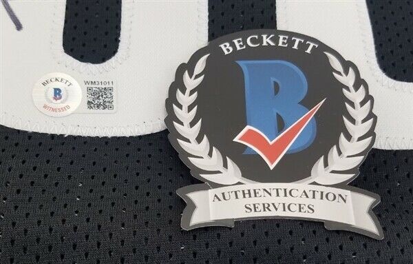 Custom on-field style jersey. Everything is sewn on, size XL. Hand-signed by Tekashi 6ix9ine.Daniel Hernandez (born May 8, 1996), known professionally as Tekashi69 or 6ix9ine (pronounced "six nine"), is an American rapper. His music has been marked by an aggressive style of rapping, while his controversial public persona is characterized by his distinctive rainbow-colored hair, extensive tattoos, legal issues, and publicized celebrity feuds.Hernandez became widely known in late 2017 after the release of his debut single, "Gummo", which was a sleeper hit. He subsequently released the mixtape Day69 (2018), which was supported by the singles "Kooda", "Keke" and "Gotti", all of which charted on the Billboard Top 100. "Fefe", featuring Nikki Minaj and Murda Beatz, a single from his debut album Dummy Boy (2018), peaked at number three on the Hot 100. Despite negative critical reception, Dummy Boy was certified platnum by the Recording Industry Association of America,(RIAA) The lot / autograph(s) includes an official Beckett Authentication Services serially numbered hologram for authenticity purposes. The signing of this item was witnessed by Beckett.Authentication: Beckett Hologram