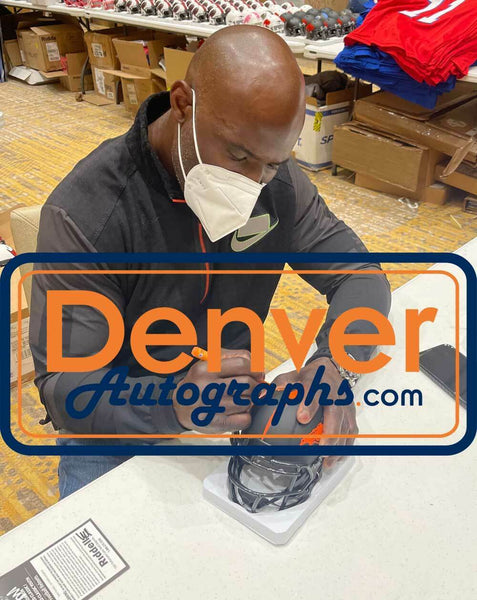 Terrell Davis Autographed Denver Broncos Eclipse Mini Helmet HOF BAS 32514 The number in the listing title is just an inventory sku for our records and is not the authentication number. This is a Denver Broncos Eclipse mini helmet that was personally autographed by Terrell Davis with HOF incription. Includes a certificate of authenticity from Beckett Authentication Services (BAS) and Denver Autographs.