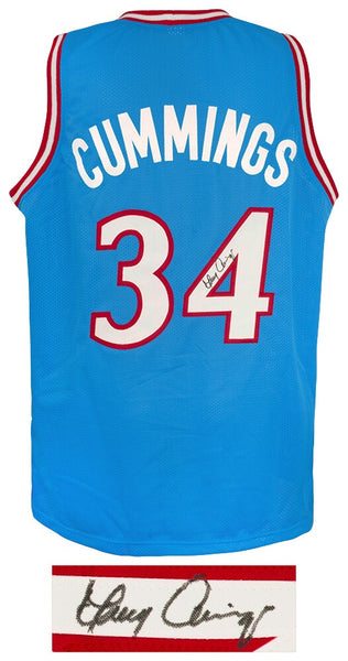 Terry Cummings signed blue throwback custom basketball jersey. Item comes with a Schwartz Sports Memorabilia tamper-proof numbered hologram and Certificate of Authenticity which can be verified online. Jersey is size XL.
