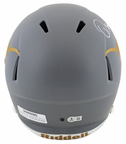 This Autographed Riddell Full Size Speed Rep Helmet has been Personally Signed by Quinn Ewers of the Texas Longhorns. This item is 100% Authentic to include a hologram by Beckett Authentication Services. This item will come with an affixed Beckett Authentication Services (BAS) authentication sticker, which includes a scannable QR code to verify authenticity. Please note that Beckett no longer provides serial-numbered COA cards, and the attached BAS sticker will serve as the complete authentication for this item. This is a BAS Witnessed Protection Program item which means a Beckett Authentication Service representative was present when this item was being signed. We conducted an autograph signing with Quinn Ewers where multiples of the same item were signed. While the photographs are representative of this item, the size, placement and strength of the signature may vary. Each item is hand signed, therefore, each autograph is unique. This item can be verified through BAS Witnessed.
