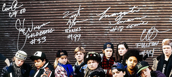 Featured is a multi signed The Mighty Ducks 16x20 with 10 signatures including Emilio Estevez, Matt Doherty, Aaron Schwartz, Shaun Weiss, Elden Henson, Garette Henson, Danny Tamberelli, Vincent LaRusso, Marguerite Moreau. This photo was hand signed in the presence of a JSA authentication representative. Included with the photo is a JSA hologram and certificate of authentication. This item would make a great addition to any entertainment memorabilia collection! SPECIFICATIONS Autographed By: Emilio Estevez Team: Sport: Baseball Authentication: James Spence Authentication (JSA)