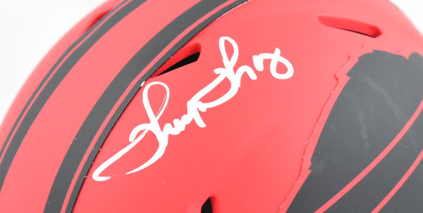 This is a hand autograph of Thurman Thomas of the Buffalo Bills on a Riddell Football Rave Speed Mini Helmet. This item has a Beckett Witnessed Authentication, which comes with a numbered hologram and a QR code for verification. You can view this item on the Beckett Authentication website and it shows when and where the item was signed. It was signed either at a public autograph appearance or a private signing. This is a stock photo of the item. Although you may not receive this exact item, the item you receive is virtually identical and brand new in great shape. This is a hand autograph of Thurman Thomas of the Buffalo Bills on a Riddell Football Rave Speed Mini Helmet. This item has a Beckett Witnessed Authentication, which comes with a numbered hologram and a QR code for verification. You can view this item on the Beckett Authentication website and it shows when and where the item was signed. It was signed either at a public autograph appearance or a private signing. This is a stock photo of the item. Although you may not receive this exact item, the item you receive is virtually identical and brand new in great shape.