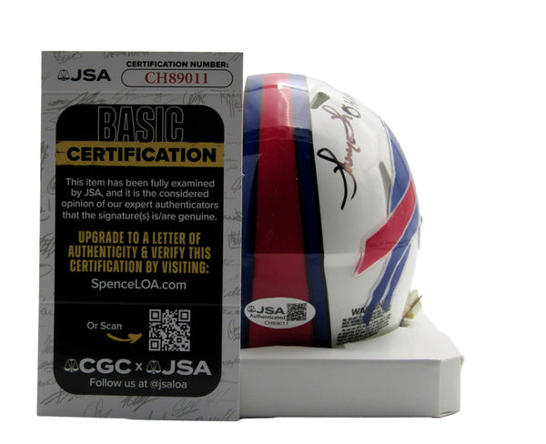 Thurman Thomas HOF Signed/Inscribed "HOF 07" Buffalo Bills Speed Mini Helmet. This helmet is authenticated by JSA and includes their tamper-proof hologram sticker and certificate of authenticity.