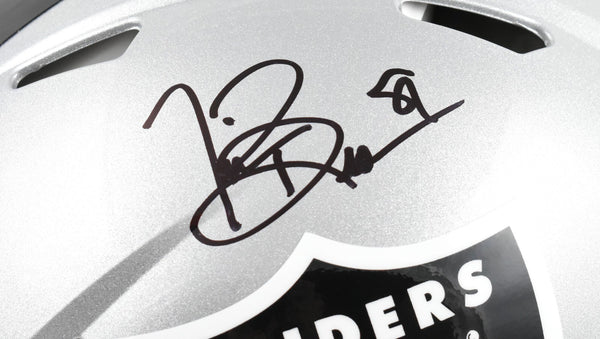 This is a Tim Brown of the Raiders autographed Riddell football full size Speed Authentic helmet. This item has a Fanatics Authentication, which comes with a numbered hologram and a QR code for verification. You can view this item on the Fanatics Authentication website. It was signed either at a public autograph appearance or a private signing. This is a stock photo of the item. Although you may not receive this exact item, the item you receive is virtually identical, brand new, and in great shape. *Autograph location may vary* This is a Tim Brown of the Raiders autographed Riddell football full size Speed Authentic helmet. This item has a Fanatics Authentication, which comes with a numbered hologram and a QR code for verification. You can view this item on the Fanatics Authentication website. It was signed either at a public autograph appearance or a private signing. This is a stock photo of the item. Although you may not receive this exact item, the item you receive is virtually identical, brand new, and in great shape. *Autograph location may vary*