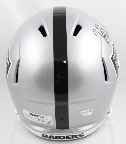 This is a Tim Brown of the Raiders autographed Riddell football full size Speed Replica helmet. This item has a Fanatics Authentication, which comes with a numbered hologram and a QR code for verification. You can view this item on the Fanatics Authentication website. It was signed either at a public autograph appearance or a private signing. This is a stock photo of the item. Although you may not receive this exact item, the item you receive is virtually identical, brand new, and in great shape. *Autograph location may vary* This is a Tim Brown of the Raiders autographed Riddell football full size Speed Replica helmet. This item has a Fanatics Authentication, which comes with a numbered hologram and a QR code for verification. You can view this item on the Fanatics Authentication website. It was signed either at a public autograph appearance or a private signing. This is a stock photo of the item. Although you may not receive this exact item, the item you receive is virtually identical, brand new, and in great shape. *Autograph location may vary*