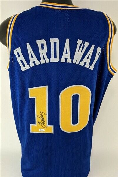 Custom on-court style jersey. Everything is sewn on, size XL. Has been hand-signed by Tim Hardaway.The lot / autograph(s) includes an official PSA/DNA hologram and matching COA for authenticity purposes. The signing of this item was witnessed by PSA.Authentication: PSA COA